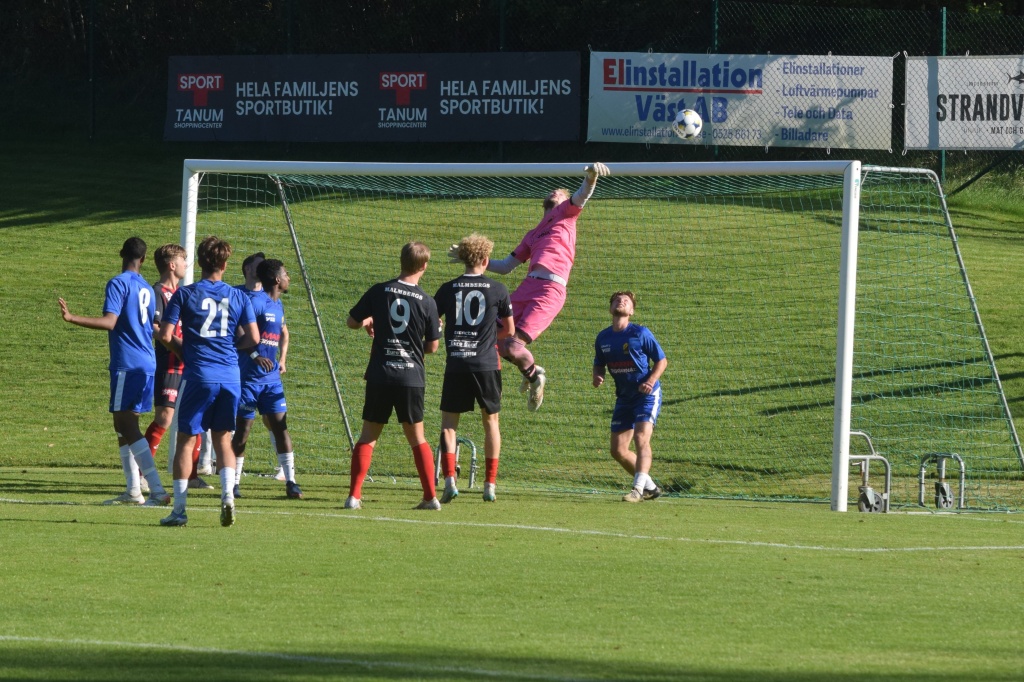 Bildserie, bild 2 av 2 För andra gången i matchen prickar Ernest Nsengo ribban på nick efter hörna