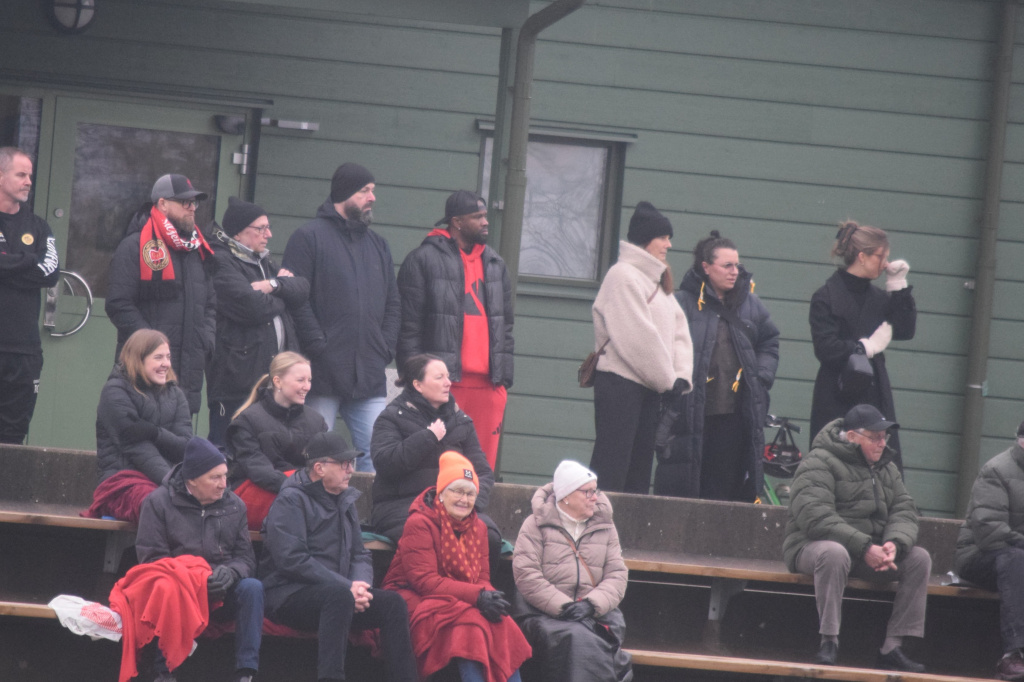 Louis Souffo på läktaren- Louis som inför denna säsong lämnat oss. Klädd i helrött med svart jacka, mitt i bild