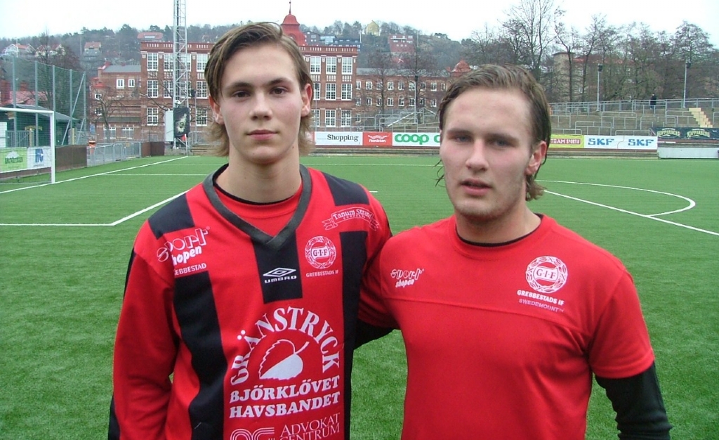Grebbestads målskyttar, Tobias Carlsson och Christoffer Söderlund.