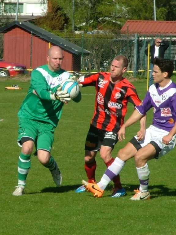 Jonas Henriksson kämpade som vanligt hårt i matchen. Men här är Fredrik Mellberg först på bollen.