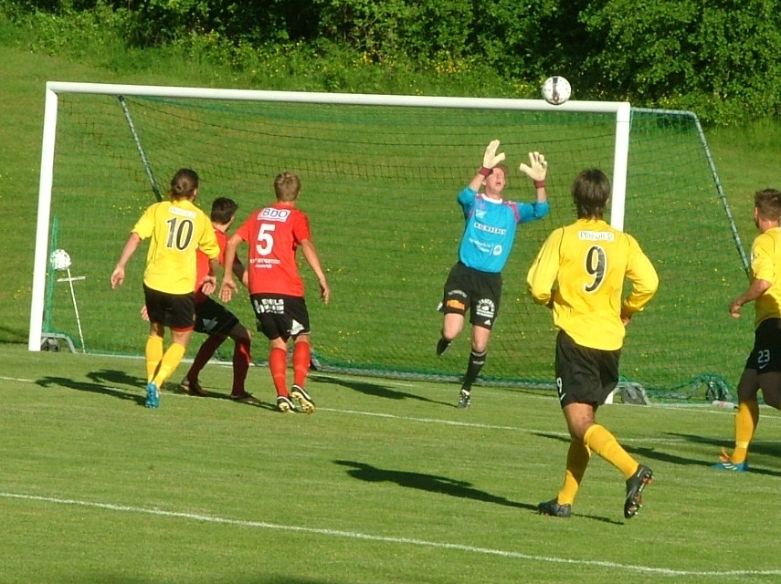 Patrik Adamczyk och Ulrik Karnström kan lugnt se på när Martin Hansson lägger beslag på bollen.