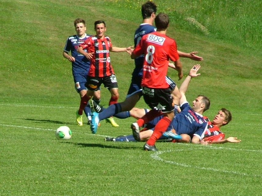 Ivan Radulovic lägger sig bakåt över Ulrik Karnström och får en mycket billig frispark