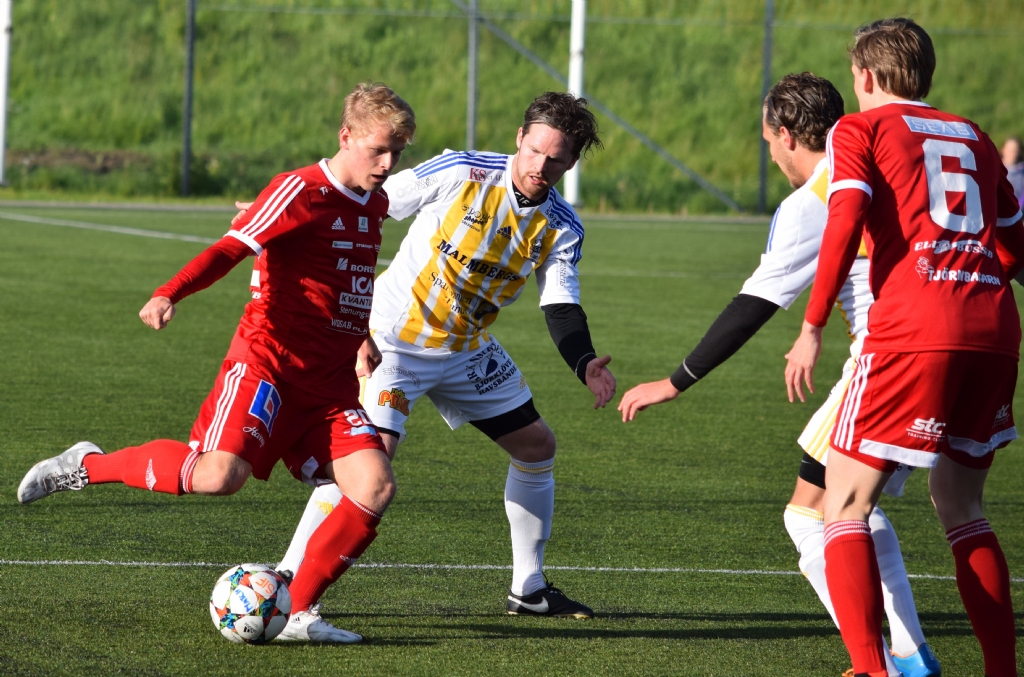 Jimmie Larsson och Christoffer Söderlund försöker stoppa Stenungsundsspalarna