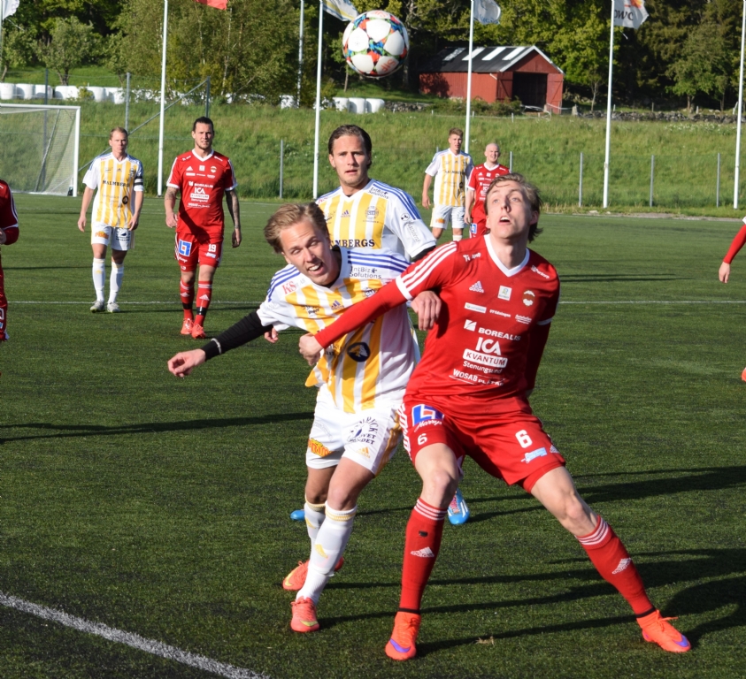 Mattias Svensson kämpar om bollen med en Stenungsundsspelare