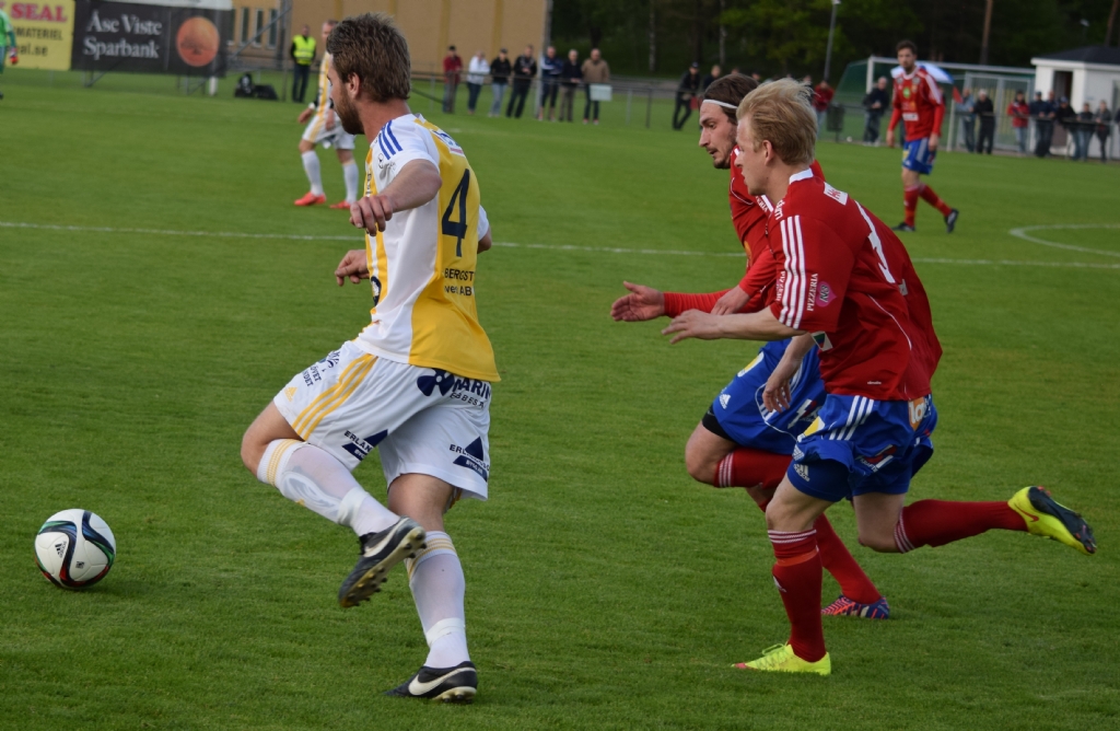 Marcus Broberg på väg framåt, jagandes av två Gauthiodspelare