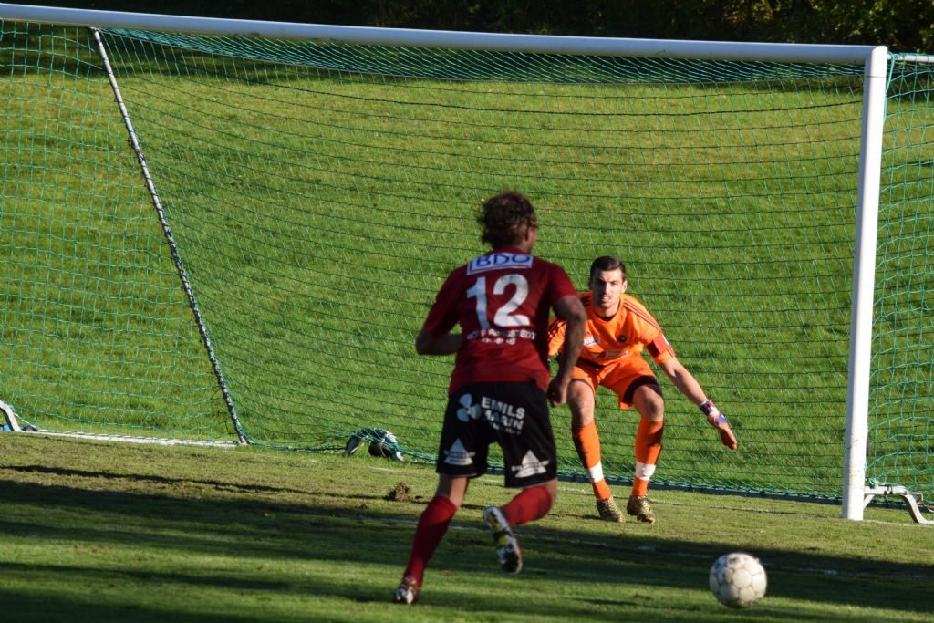 Christoffer Söderlund mot ett bra läge men han kommer tillslut ur vinkel och provar ett inspel som dock täcks