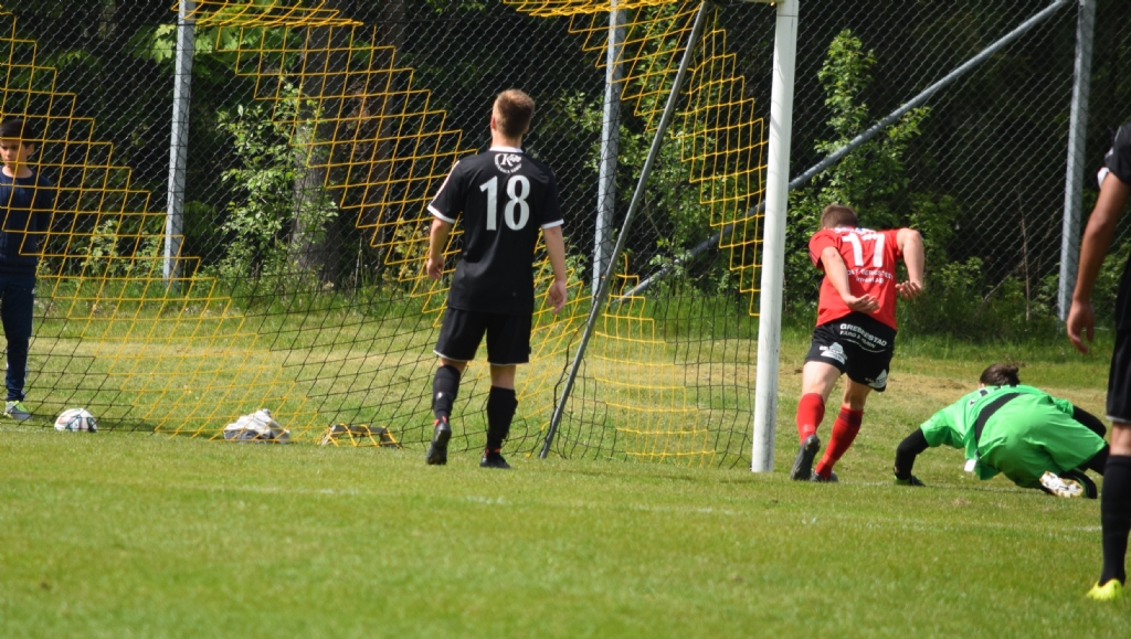Bildserie, bild 4 av 5 Bollen i nätet. Rickard Johansson har gett Grebbestad ledningen