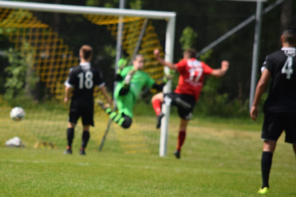 Bildserie, bild 3 av 3 Suddig bild men visar hur Rickard Johanssons skott passerar målvakten Jonathan Tobiasson till ledning för Grebbestad