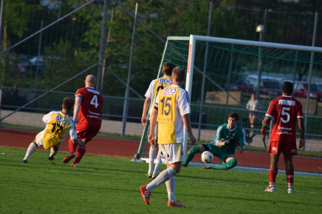 Rickard Johansson får iväg ett skott men ingen bra fart på bollen och Robert Josefsson räddar