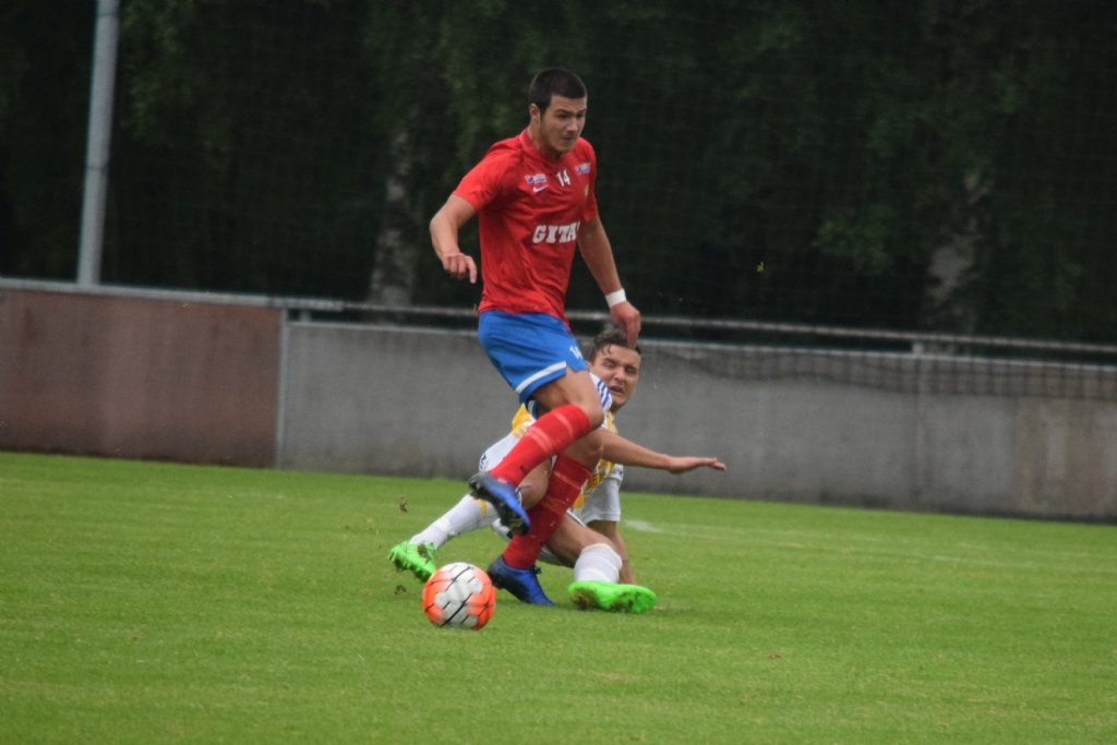 Edon Qeriqi med en perfekt tackling och bollen är på väg bort