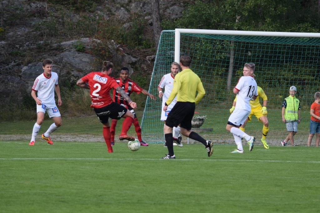 Bildserie, bild 1 av 3 Felix Norén skjuter skottet som skall ge Grebbestad ledningen