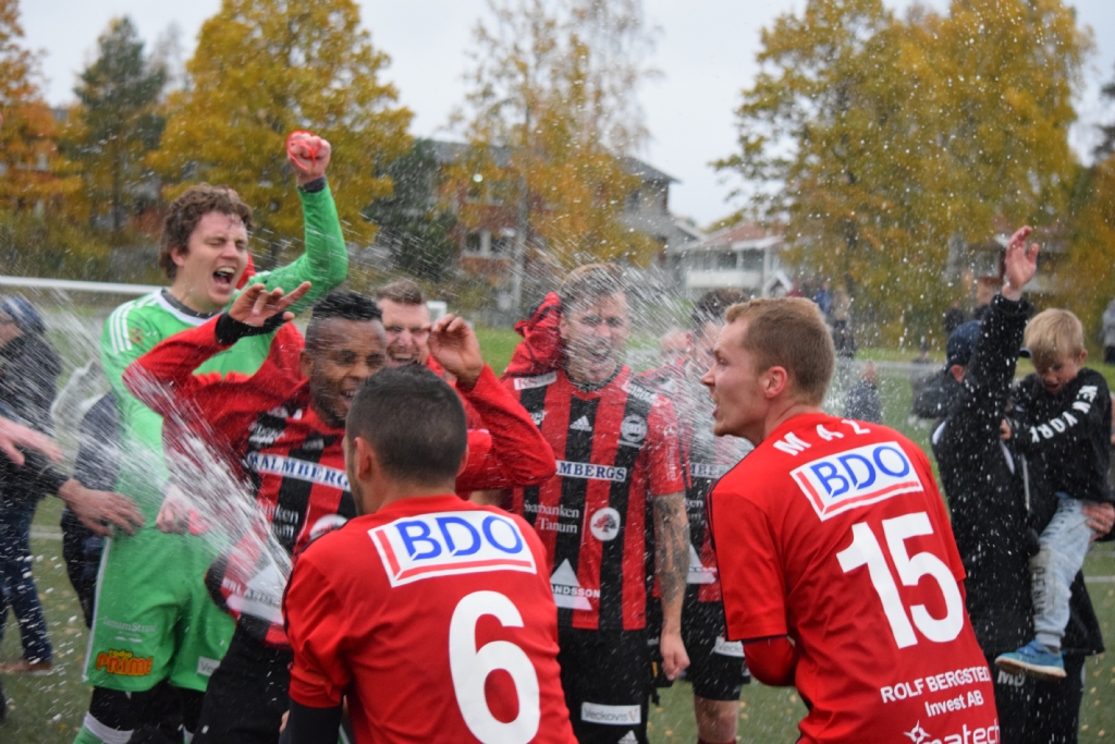 Efter seger mot Skoftebyn och några dramatiska minuter efter slutsignalen i Grebbestads match så kom äntligen beskedet: 2-2 slut i Trollhättan! 2-2 och jättejubel på Sparvallen i Tanum där sista matchen spelades, Grebbestad seriesegrare!