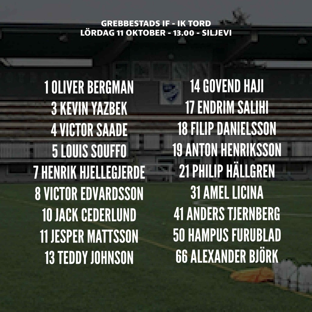 Truppen mot Tord är klar och ser ut som följer: